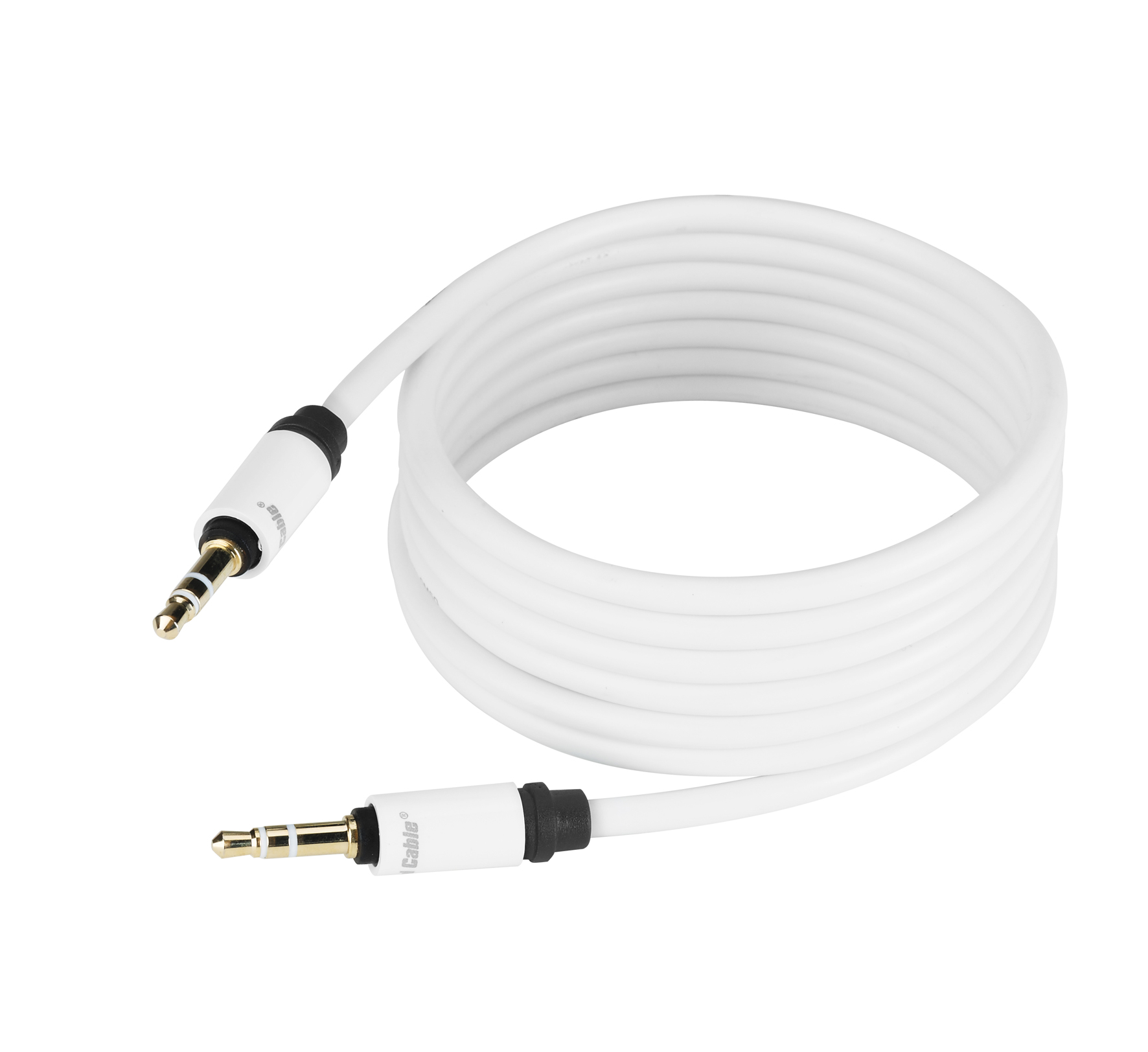 Câble audio stéréo avec fiches Jack à contact or. Idéal pour relier les lecteurs MP3 ou autres sources nomades aux amplis ou chaînes Hi-Fi.